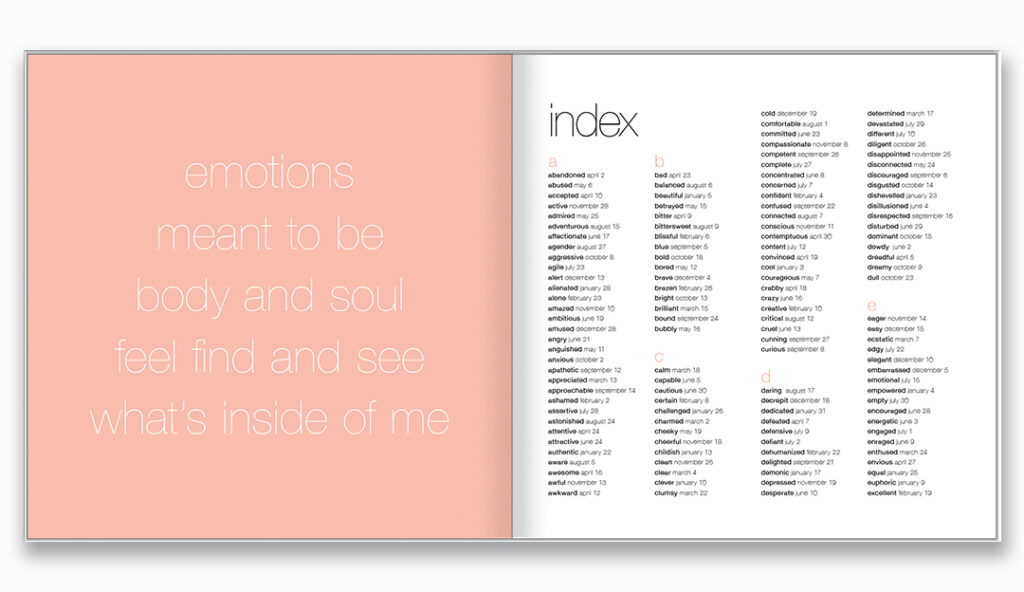 366 emotions clearly arranged alphabetically in the index