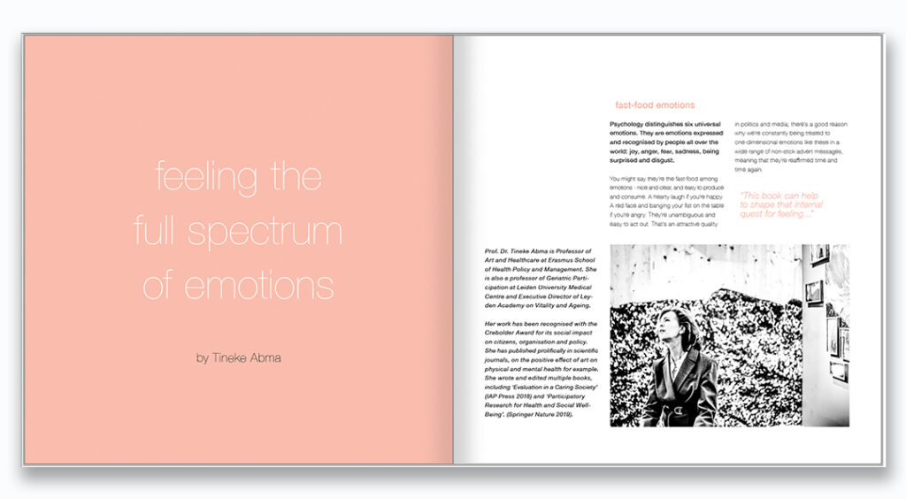 “Many people are amazed to hear that 366 feelings are depicted in this book. You can see them wondering if there are that many feelings. The concept is food for thought, it provokes: which emotions and feelings could those be?”